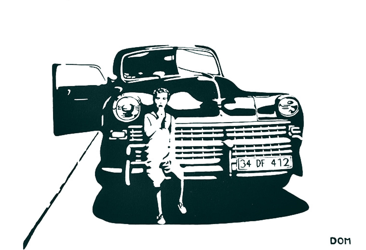 A collective taxi or Dolmus, in Istanbul in the 90’s, made from an old American car waiting to be full of passengers before leaving the terminus station. A young boy eats his ice cream (dondurma) in front of it.